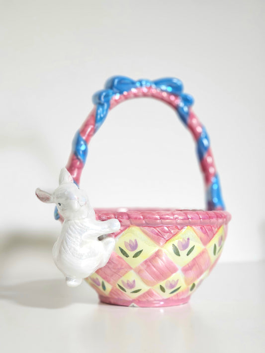 Ceramic Lustre Egg-Shaped Bunny Easter Basket