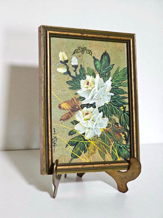Brass Heart Cut Crystal Flower Art Hinged Box