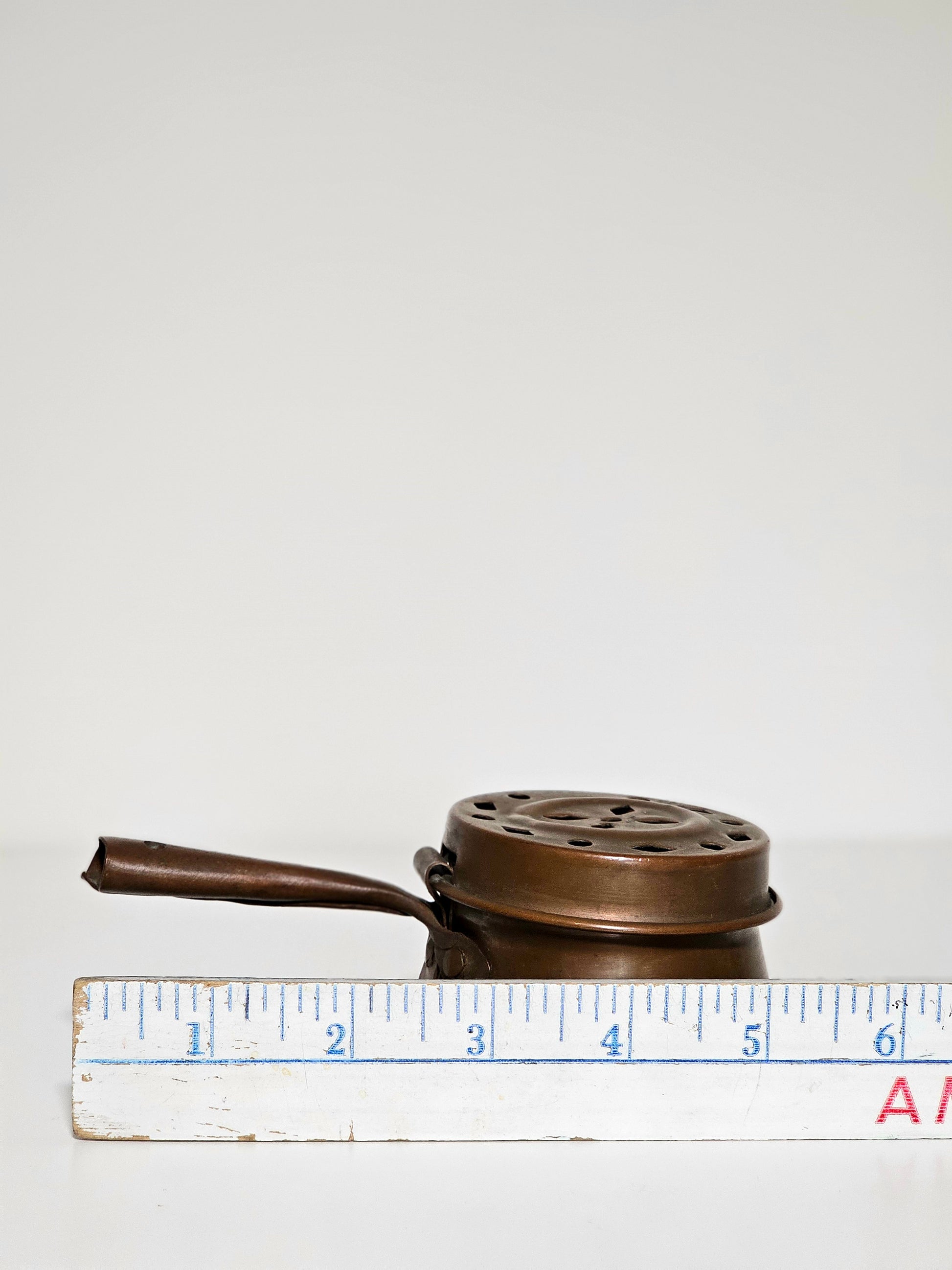 This has conflicting history, with some calling this a Chestnut roaster and some calling it a bed warmer! I suppose it would've been suitable for both. What we do know is its an antique piece of living, its made from copper, and its too adorable.