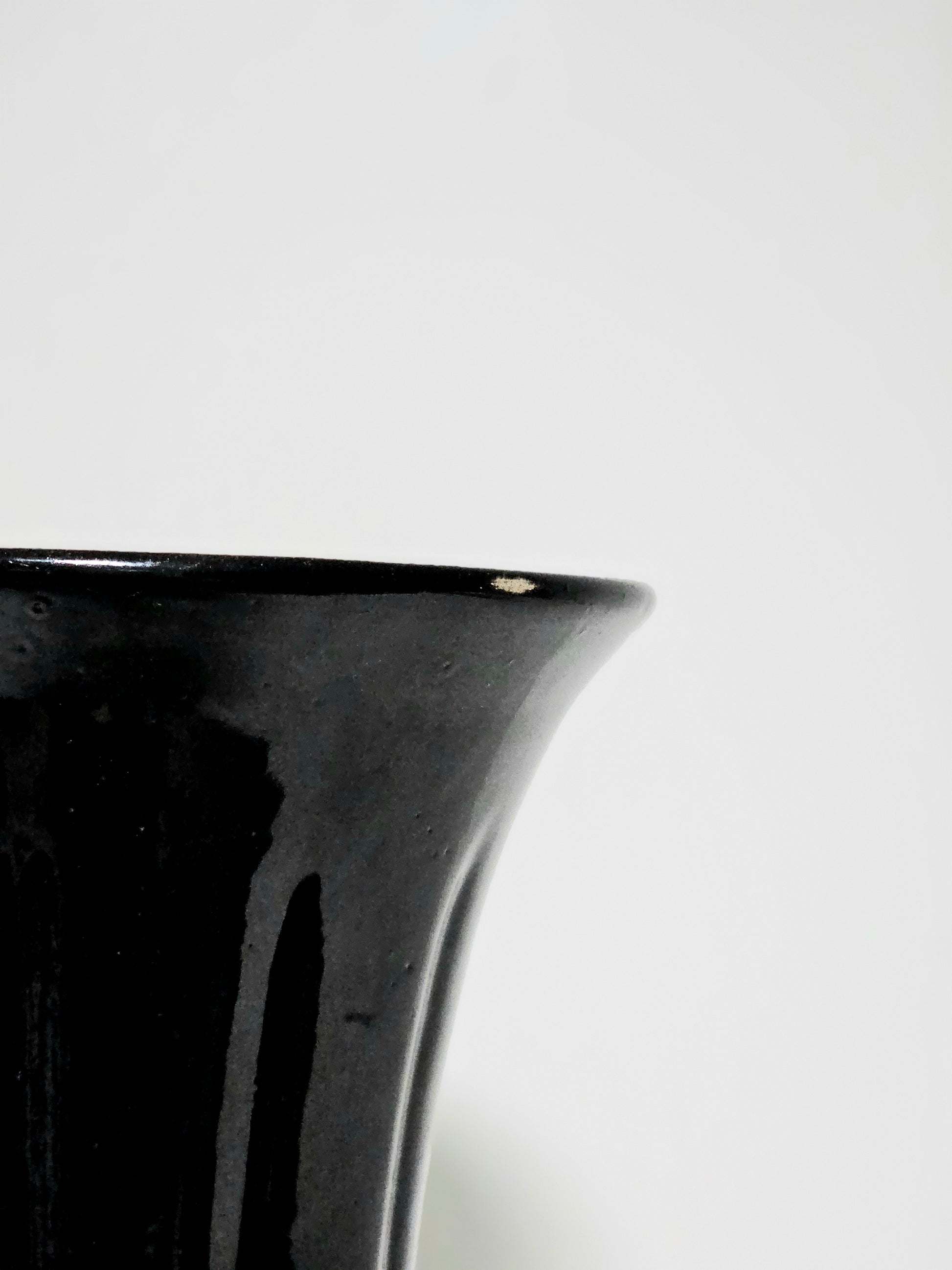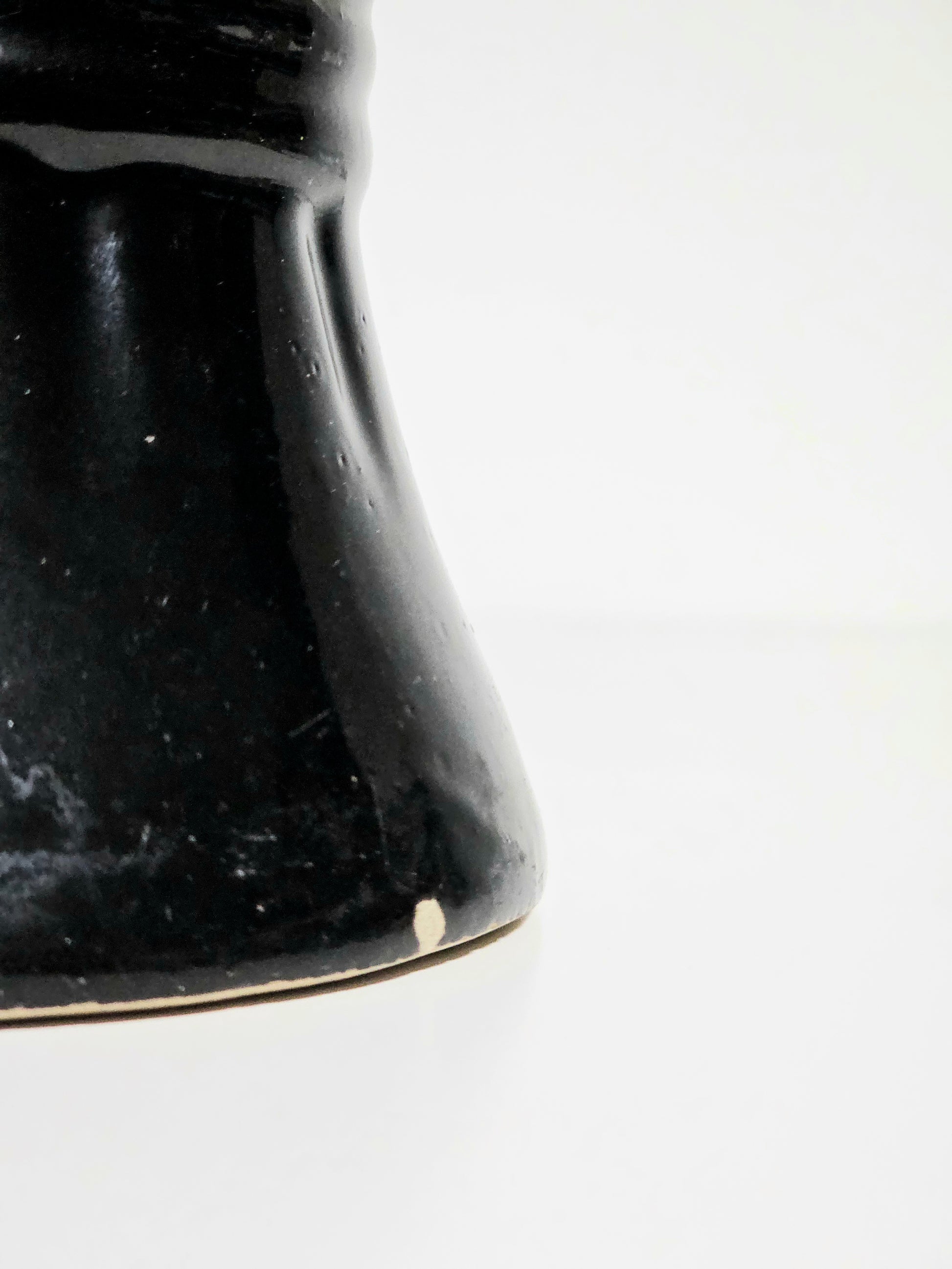 *a small character chip to the bottom of rim. The other two spots are manufacturer glaze features.